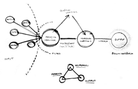No diagrama do sistema podem observar-se as relações entre estas espécies, mas também os conceitos a explorar nas relações humanas, no design de comunicação e num eventual dispositivo assente nos novos media: